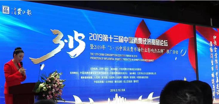 2019年3月15日, 由消費日報舉辦的2019年第十三屆中國消費者經(jīng)濟高層論壇暨2019年3?15中國消費市場影響力品牌峰會在北京舉行。中國輕工業(yè)聯(lián)合會工會主席、黨建人事部副主任等出席峰會,新華社、中新社、人民網(wǎng)、鳳凰視頻、騰訊視頻等500余家媒體參與此次盛會報導。