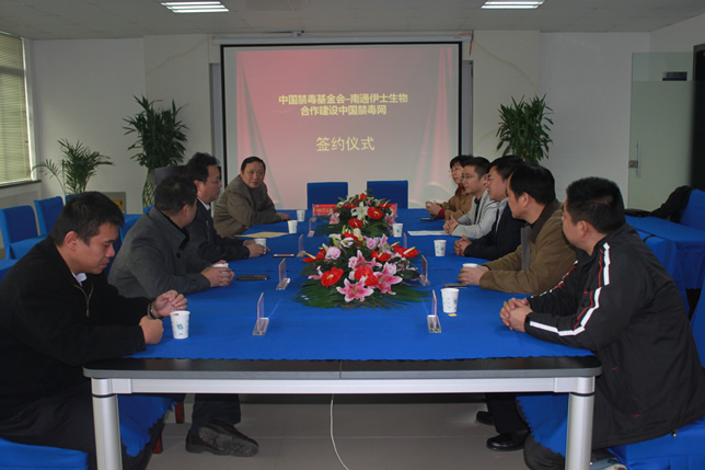 2013年12月7日上午,南通市伊士生物技術(shù)有限責(zé)任公司在伊士生物研究院會(huì)議室舉行了“中國(guó)禁毒基金會(huì)-南通伊士生物合作建設(shè)中國(guó)禁毒網(wǎng)簽約儀式”。中國(guó)禁毒基金會(huì)秘書長(zhǎng)李憲輝先生,江蘇省公安廳禁毒總隊(duì)副總隊(duì)長(zhǎng)陳紅淦先生,省公安廳和市公安局相關(guān)領(lǐng)導(dǎo)共7人出席了簽約儀式。
